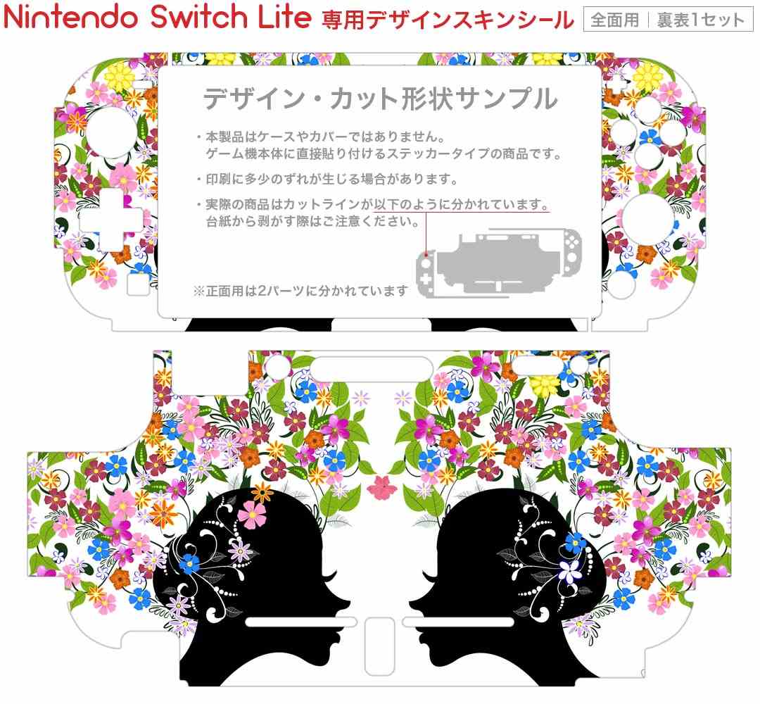 製品名 Nintendo Switch Lite専用 デザインスキンシール セット内容 Nintendo Switch Lite本体用スキンシール(裏表)各1枚 ※液晶側シールは2パーツに分かれていますニンテンドースイッチライト専用です。