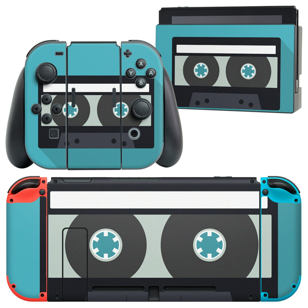 igsticker Nintendo Switch 用 デザインスキンシール 任天堂 ニンテンドー スイッチ 専用 本体ドック Joy-Con Joycon ジョイコン 専用 ゲーム機 カバー アクセサリー フィルム ステッカー 010290 カセット テープ 黒