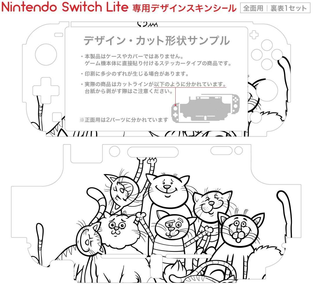 製品名 Nintendo Switch Lite専用 デザインスキンシール セット内容 Nintendo Switch Lite本体用スキンシール(裏表)各1枚 ※液晶側シールは2パーツに分かれていますニンテンドースイッチライト専用です。