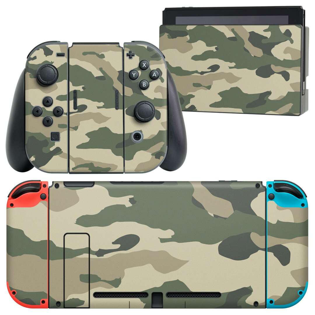 igsticker Nintendo Switch 用 デザインスキンシール 任天堂 ニンテンドー スイッチ 専用 本体ドック Joy-Con Joycon ジョイコン 専用 ゲーム機 カバー アクセサリー フィルム ステッカー 008444 グリーン 緑 迷彩 模様