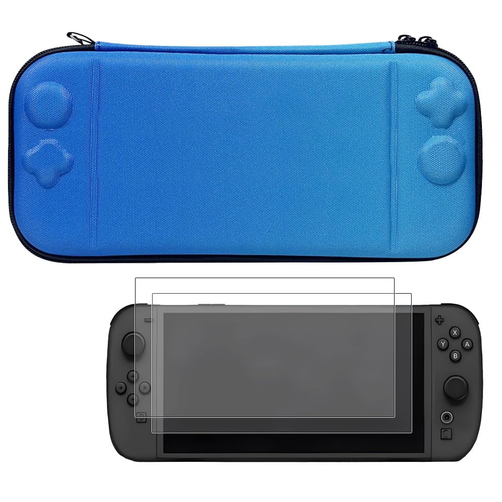 【送料無料】Switch 2 (2025) 用ケース+ 2枚ガラス強化保護フィルム Nintendo Switch 2 用カバー ニンテンドースイッチライト EVA 収納バッグ 防塵 防水 耐衝撃 小物収納 軽量 持ち運び便利 全面保護カバー(Ninten-do Switch 2 青のグラデーション)