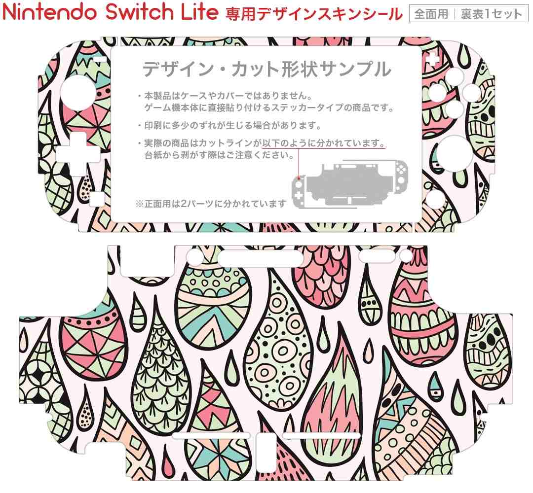 製品名 Nintendo Switch Lite専用 デザインスキンシール セット内容 Nintendo Switch Lite本体用スキンシール(裏表)各1枚 ※液晶側シールは2パーツに分かれていますニンテンドースイッチライト専用です。