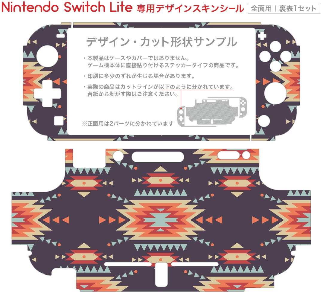 製品名 Nintendo Switch Lite専用 デザインスキンシール セット内容 Nintendo Switch Lite本体用スキンシール(裏表)各1枚 ※液晶側シールは2パーツに分かれていますニンテンドースイッチライト専用です。