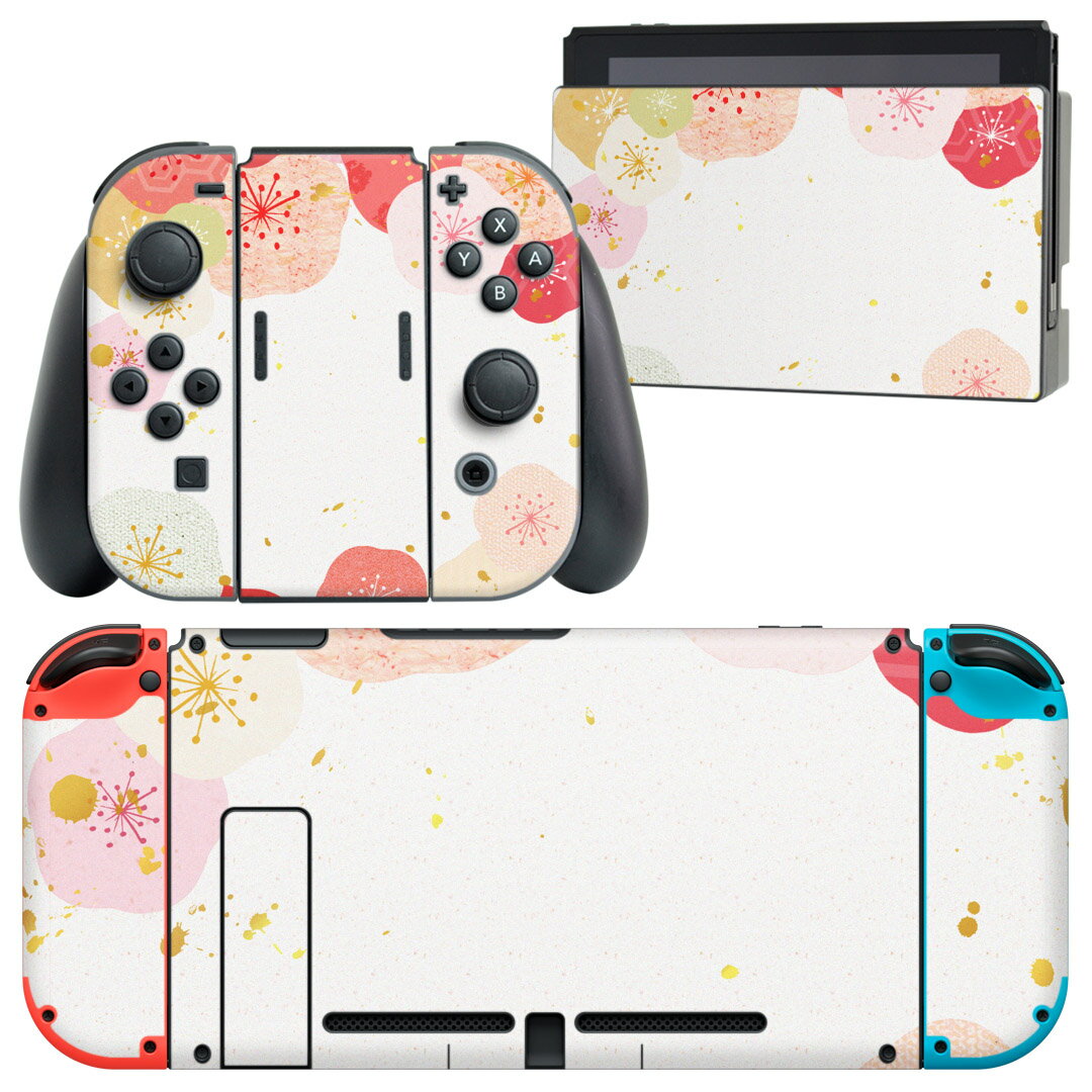 igsticker Nintendo Switch 用 デザインスキンシール 任天堂 ニンテンドー スイッチ 専用 本体ドック Joy-Con Joycon ジョイコン 専用 ゲーム機 カバー アクセサリー フィルム ステッカー 006211 花 和風 和柄