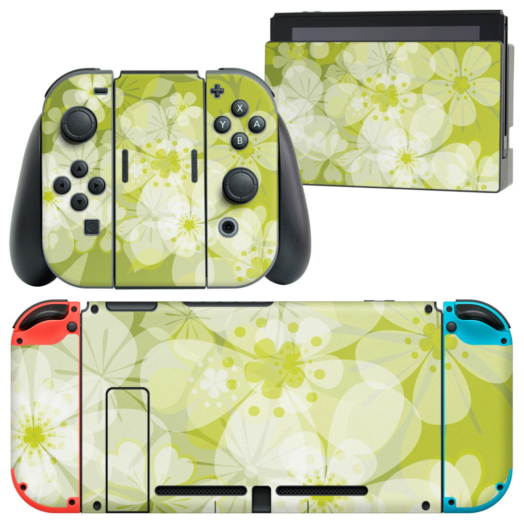 igsticker Nintendo Switch 用 デザインスキンシール 任天堂 ニンテンドー スイッチ 専用 本体ドック Joy-Con Joycon ジョイコン 専用 ゲーム機 カバー アクセサリー フィルム ステッカー 001337 花 模様