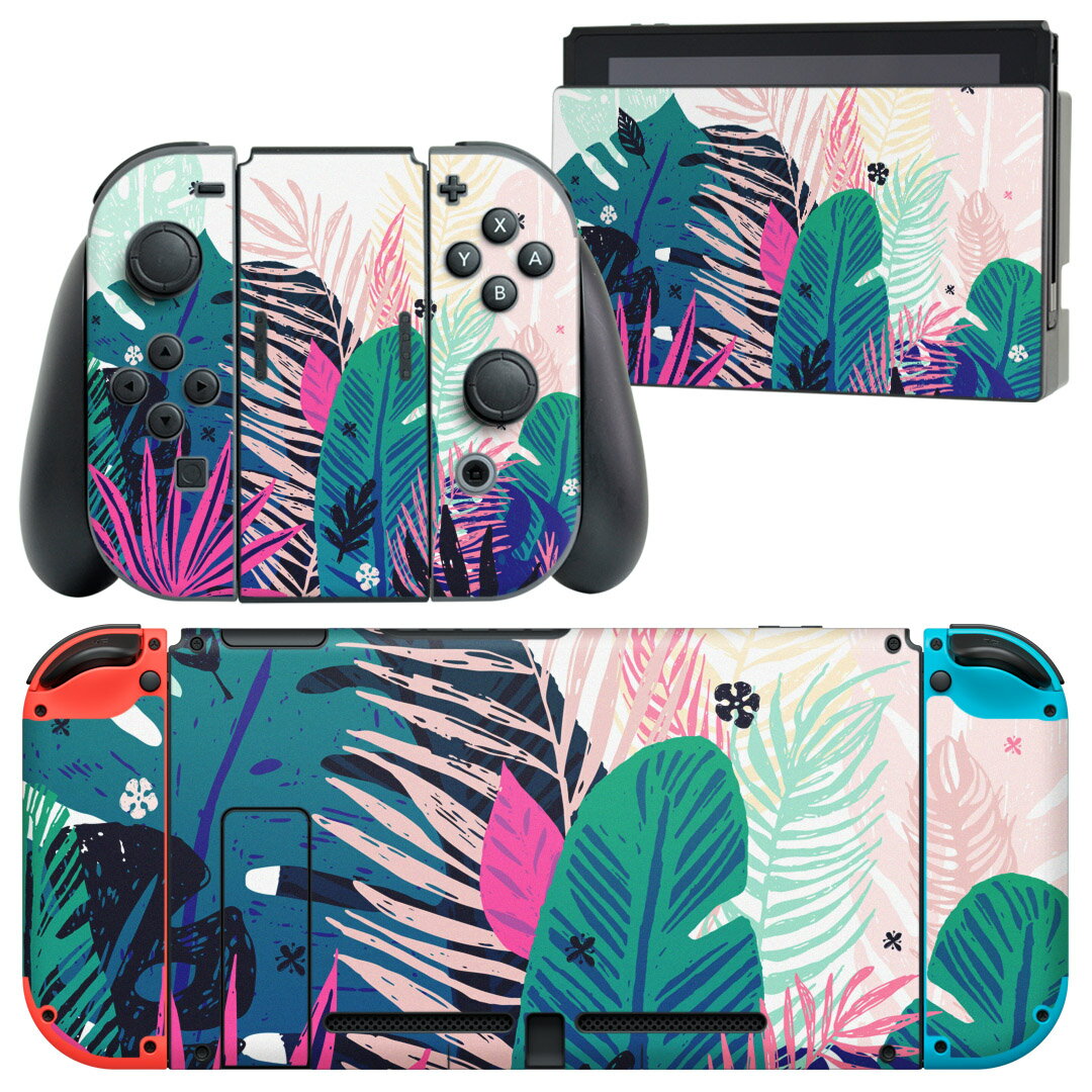 igsticker Nintendo Switch 用 デザインスキンシール 任天堂 ニンテンドー スイッチ 専用 本体ドック Joy-Con Joycon ジョイコン 専用 ゲーム機 カバー アクセサリー フィルム ステッカー 014311 リーフ トロピカル