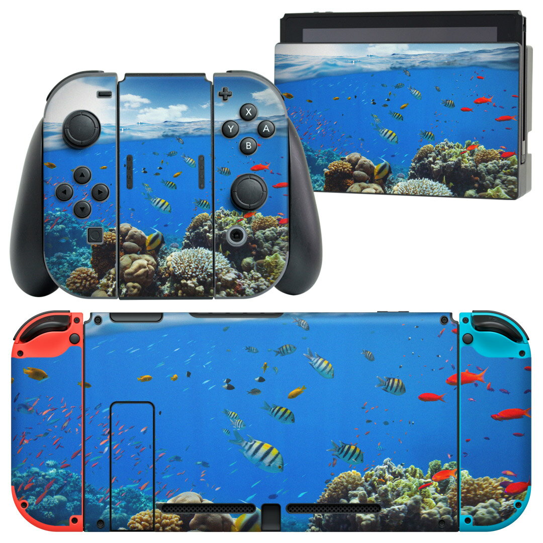 igsticker Nintendo Switch 用 デザインスキンシール 任天堂 ニンテンドー スイッチ 専用 本体ドック Joy-Con Joycon ジョイコン 専用 ゲーム機 カバー アクセサリー フィルム ステッカー 010920 海 魚 写真